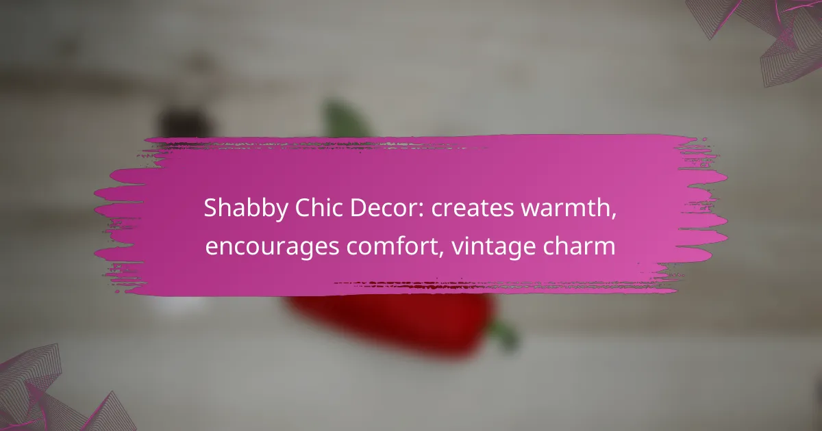 Shabby Chic Decor combines vintage charm with a cozy atmosphere, emphasizing comfort and warmth. Key elements include comfortable textiles, rustic accessories, layered lighting, and natural materials that work together to create a welcoming space.